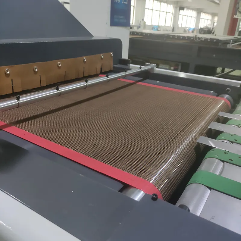 (9) función de autoextinción de la cinta transportadora para evitar bloqueos e incendios; (10) sistema de secado por infrarrojos, secado ligero, no afectado por la ventilación, puede secar eficazmente la capa de aceite básica en la superficie del papel y no hará que el papel ser estirado y deformado por el calor;