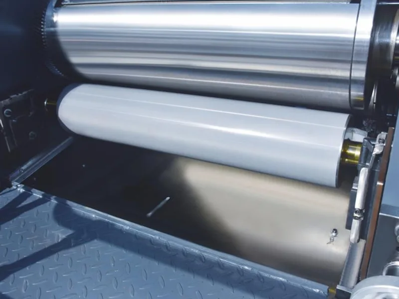 6. Rodillo de impresión de gran diámetro, equilibrado dinámicamente para una capa uniforme de aceite.